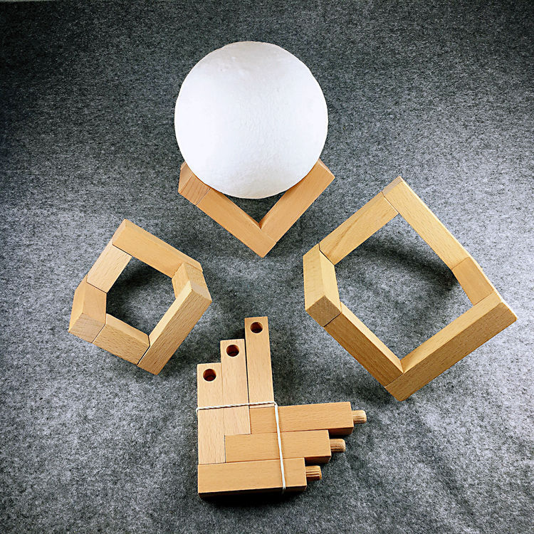 月の小夜灯の実木の支えの大きいサイズの3dプリントの月の明かりの木製の支えの星の明かりのケヤキの木の台