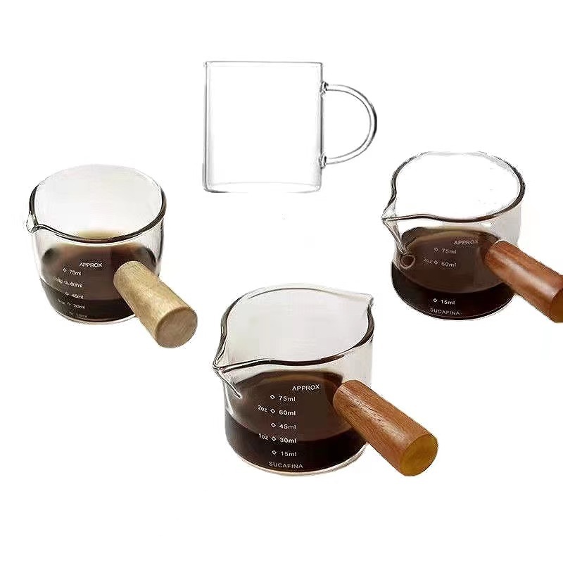 高ホウ素シリコンガラス二口ミルクカップミニ透明厚さ両面スケールカップ抽出カップコーヒーカップ