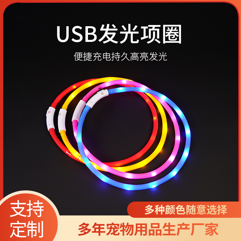 ペット犬首輪led発光首輪usb充電シリカゲル夜光犬首輪フラッシュビーズ首輪卸売り