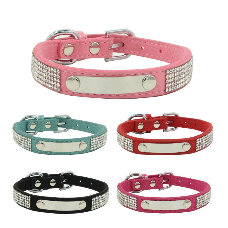 紛失防止のためのクロスボーダーペット首輪、印刷可能なレタリング、光沢のあるラインストーンの装飾、快適なレザー、調節可能なペット
