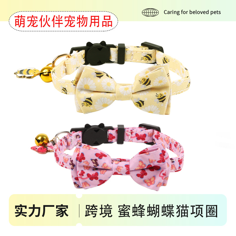 新品ペット猫首輪田園蜂蝶シリーズ花猫蝶結び首輪鈴付き