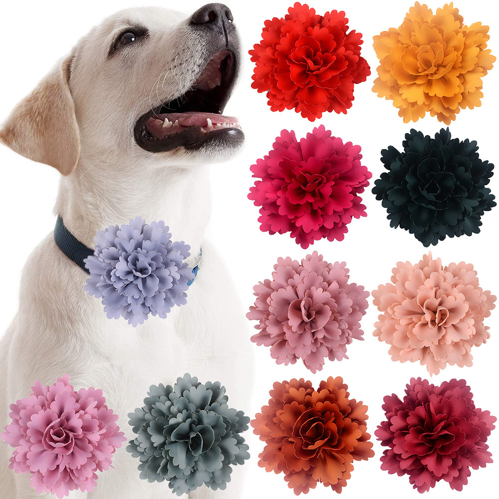 新型モランディ色の大きいサイズ10.5cm波の縁のカエデの葉の手作りの絹織物のペットの犬の首輪は花を飾ります。