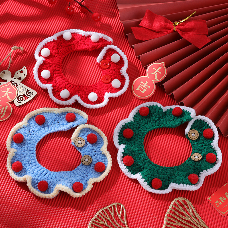 メーカー卸売り手織りレースペット首輪多彩で柔らかい猫首輪はニットのマフラーを調節できる
