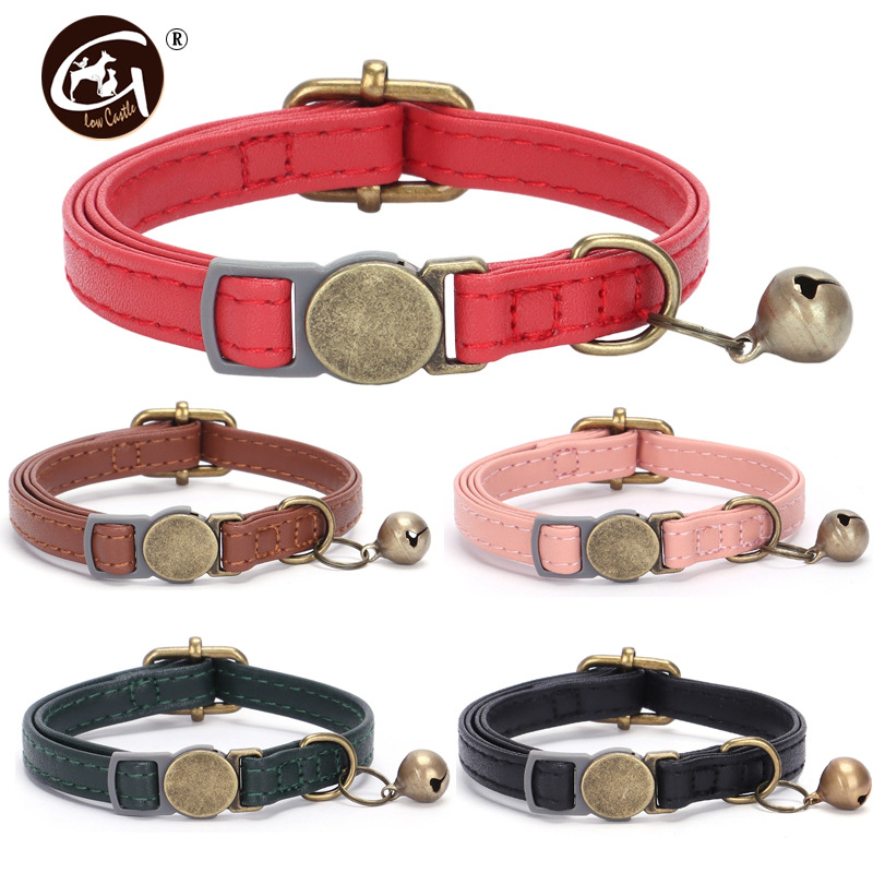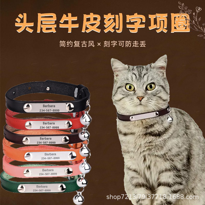 頭層牛革ペット猫首輪鈴猫首輪. 紛失防止ステンレス彫刻ペット用品