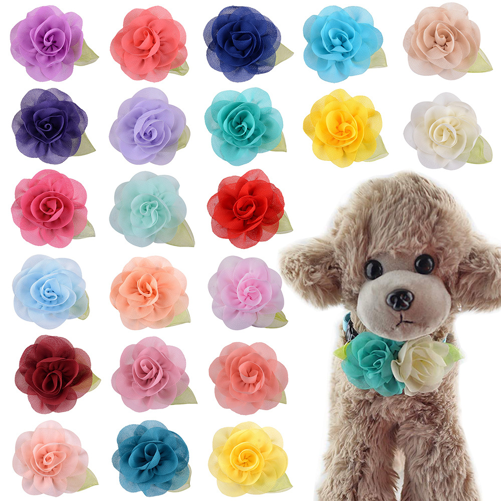 外国貿易の商品の供給源の手作りは葉のシフォンの花のペットの首輪の布芸の立体的な装飾の小さい花の31色を持ちます。