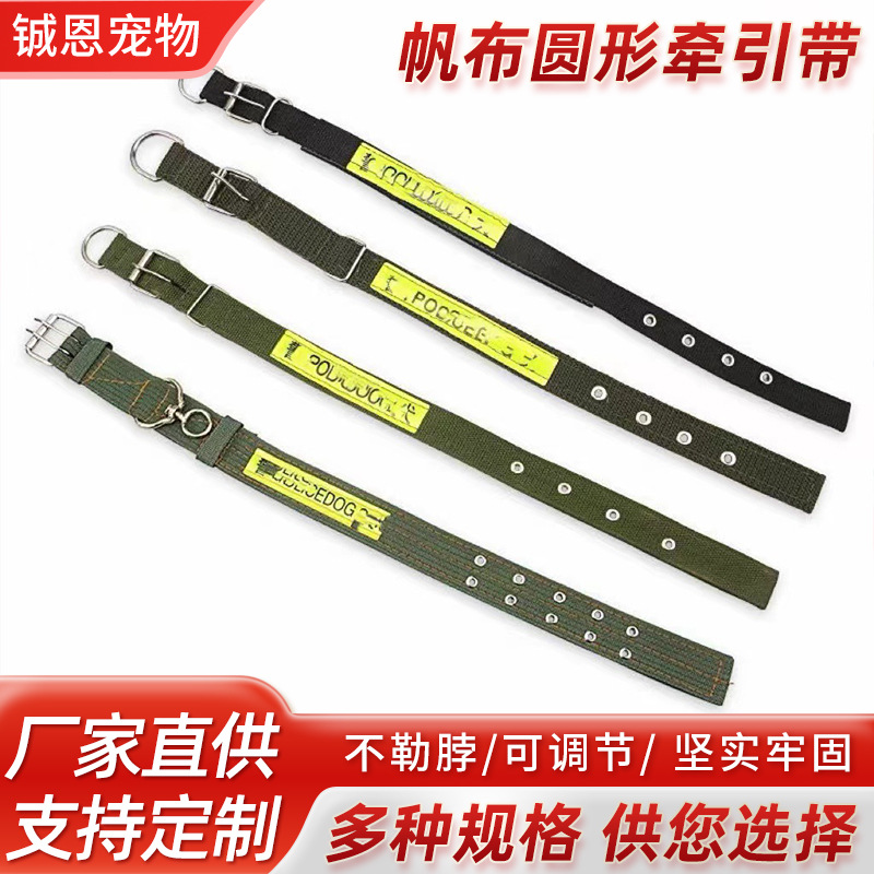 現物の犬の首輪の軍緑の厚い延長のダブルボタンのペットの首輪の丸い牽引ベルトのキャンバスは適用します。
