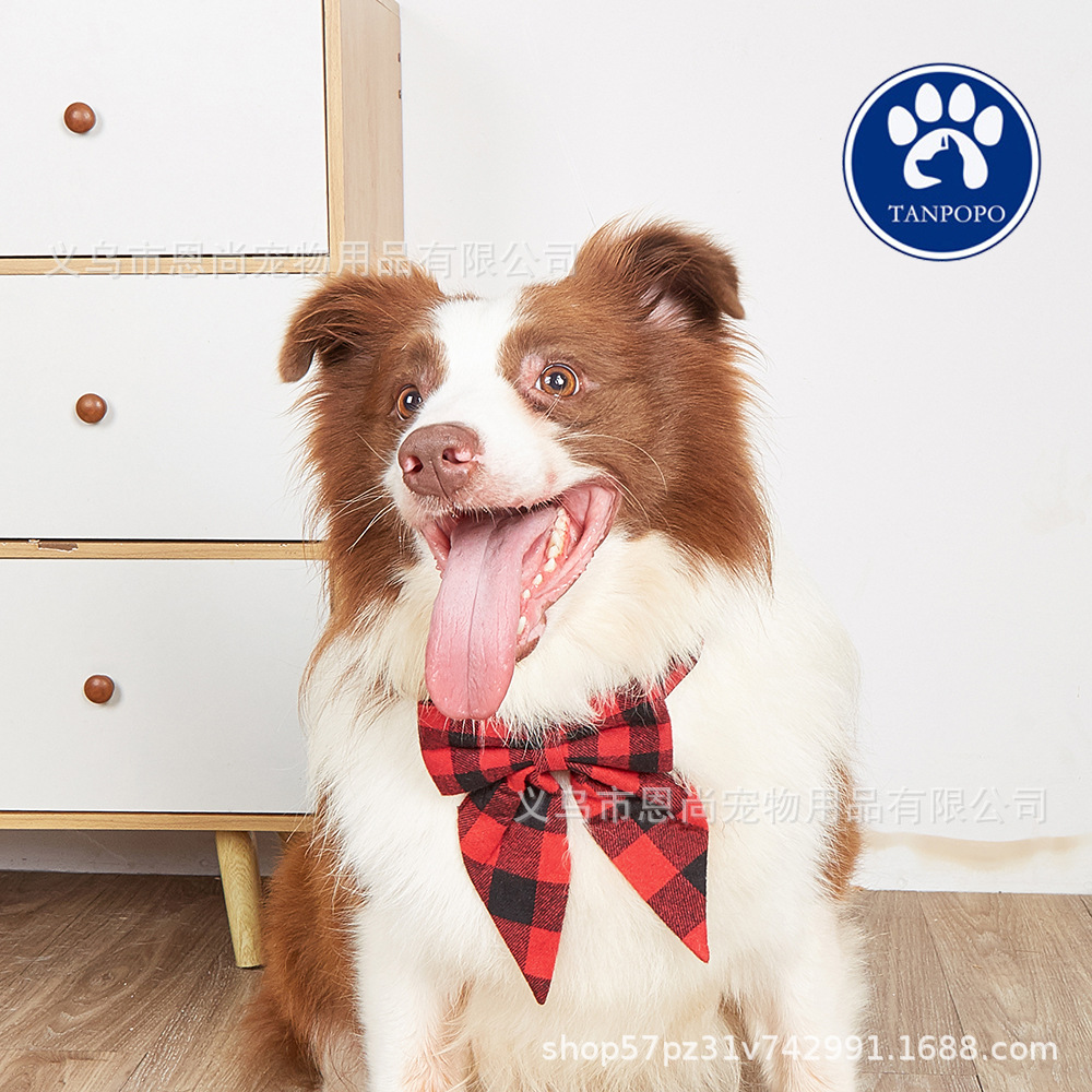 厂家批发现货跨境圣诞节格子蝴蝶结领结狗狗口水巾狗项圈宠物配件