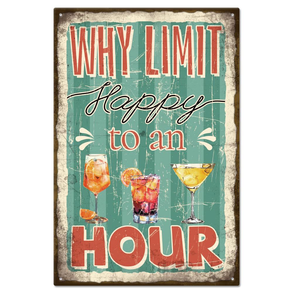 バーユーモアブリキ絵 Why Limit Happy to An Hour ハッピーアワー面白い装飾