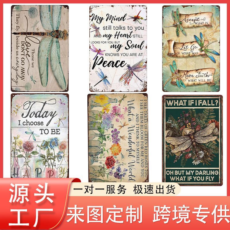 国境を越えたトンボの庭のテーマの鉄絵アルミ板絵画パーソナライズされた壁装飾バーカフェ装飾絵画卸売