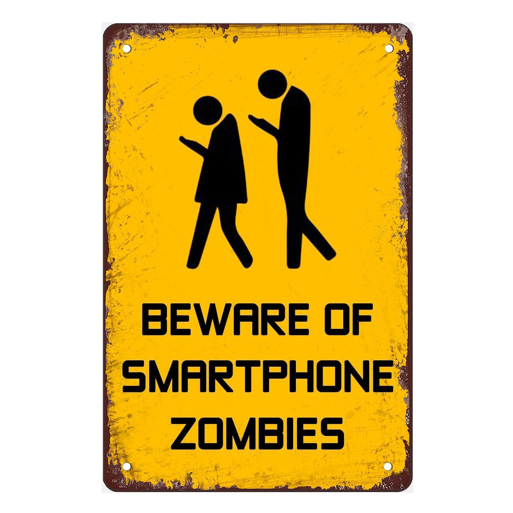 ユーモア警告鉄絵 スマートフォンゾンビに注意してください ヴィンテージ壁装飾
