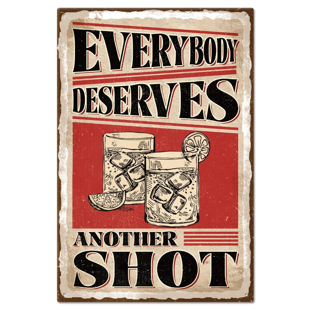 アメリカン バー ブリキ絵 Everybody Deserves Another Shot ユーモア装飾吊り絵