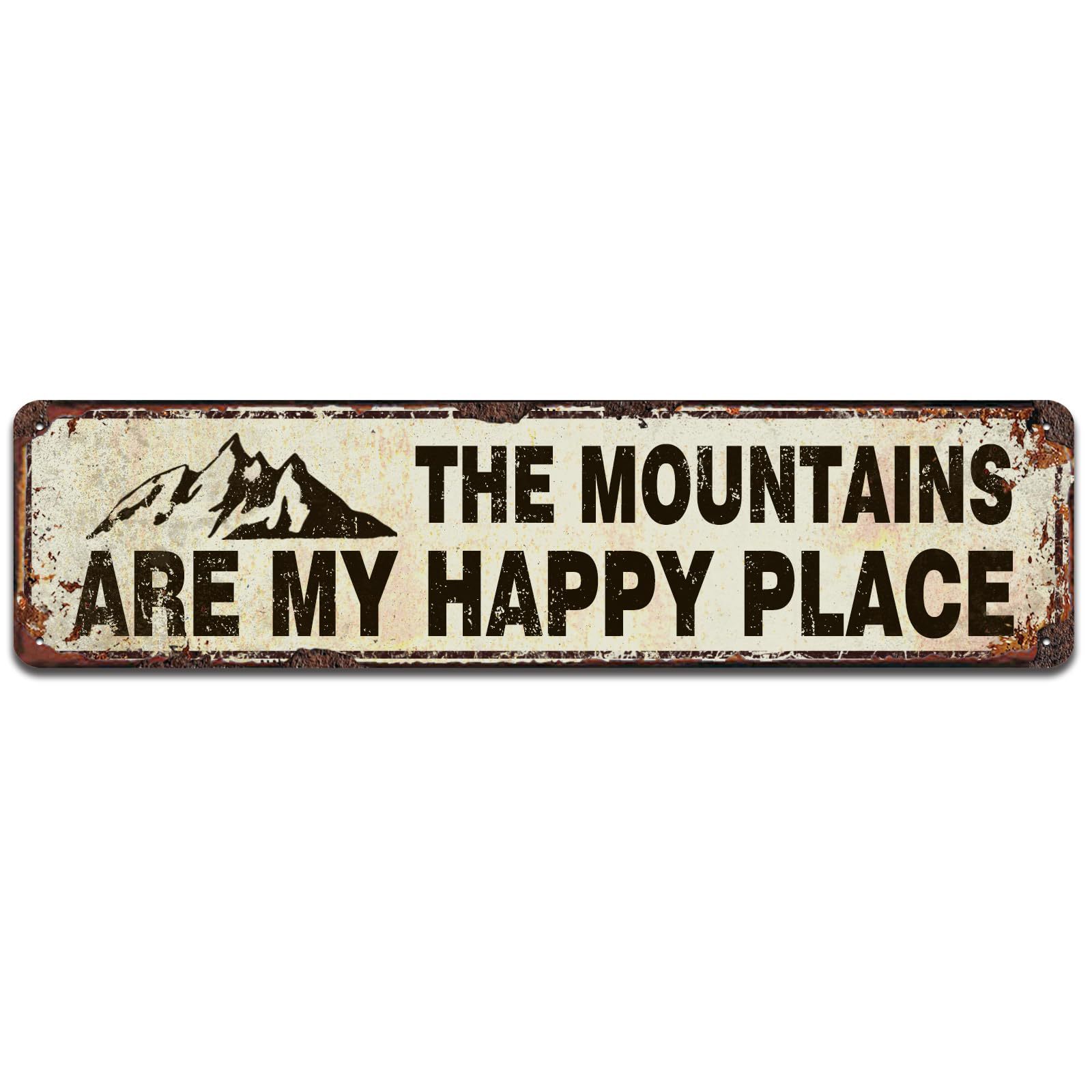 山の癒しのブリキ絵 THE MOUNTAINS ARE MY HAPPY PLACE 吊り下げ絵画装飾