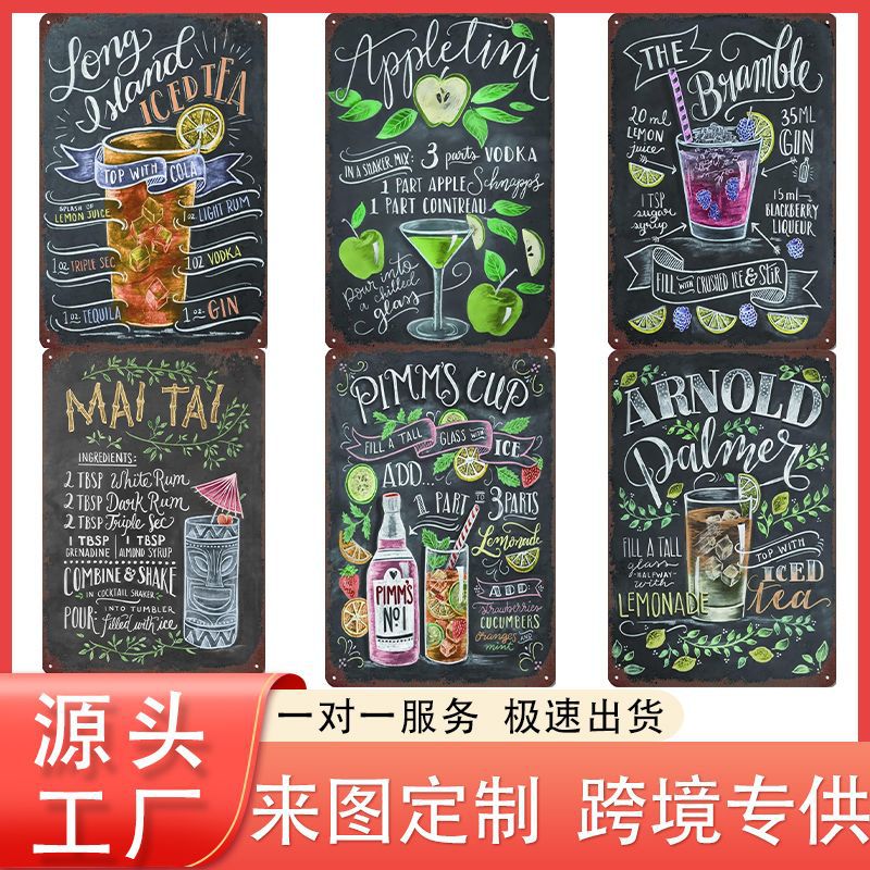 クロスボーダーカクテルブリキ絵画アルミ板絵画クリエイティブパーソナライズされた壁装飾バーカフェ装飾絵画卸売