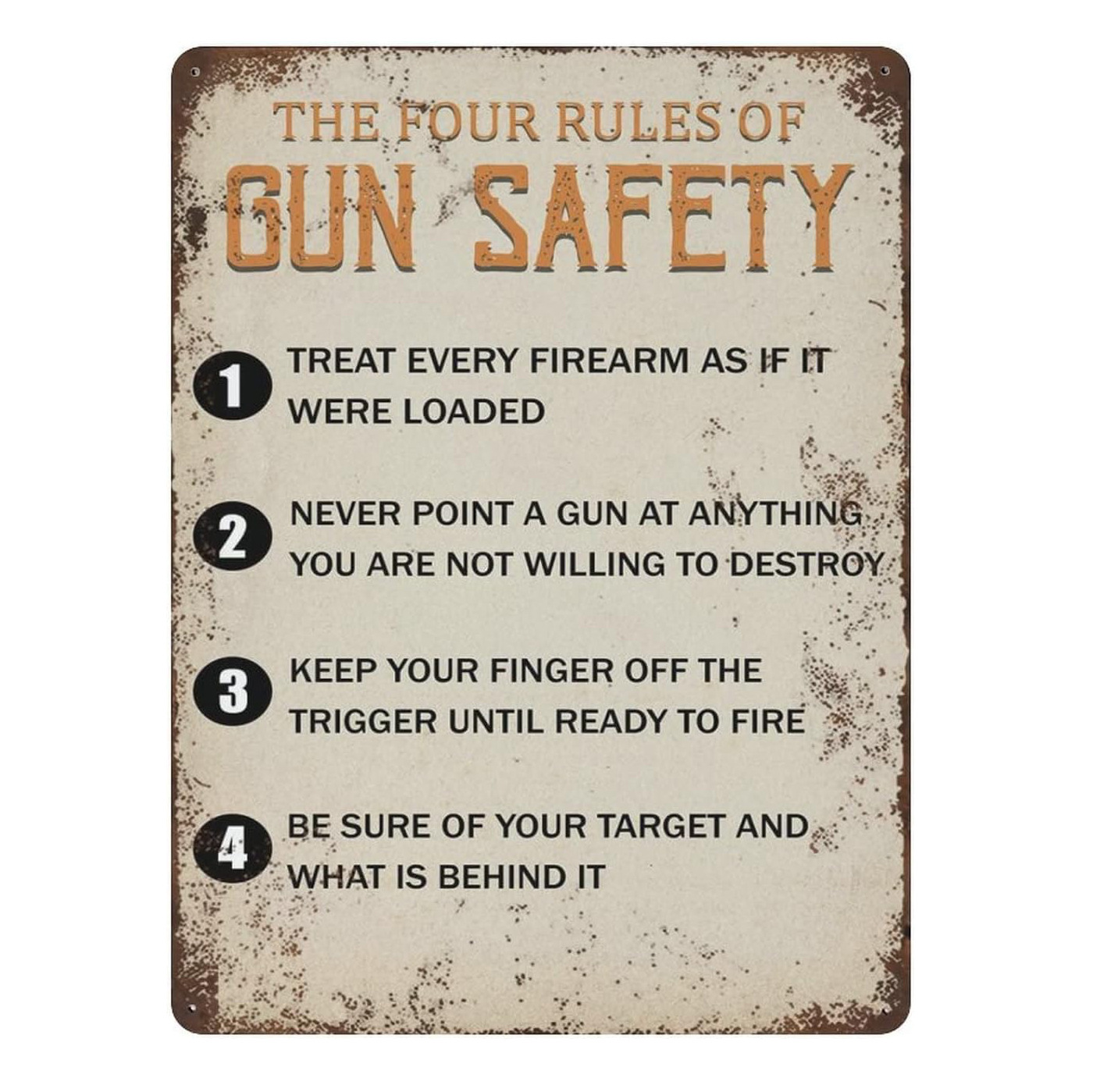 THE FOUR RULES OF GUN SAFETY 銃器安全の 4 つのルール ブリキ絵 アメリカン レトロ