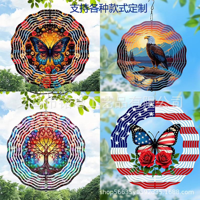 国境を越えた人気の動物風回転装飾品屋外中庭の装飾蝶オンドリフクロウ3D回転風鈴