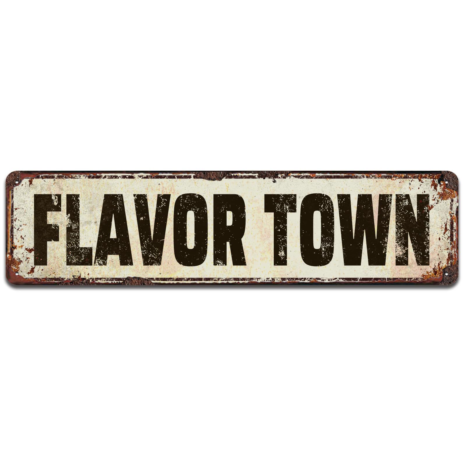 アメリカンレトロなブリキ絵 FLAVOR TOWN 英語キッチンレストラン装飾ペンダントパーソナライズされたクリエイティブプラーク