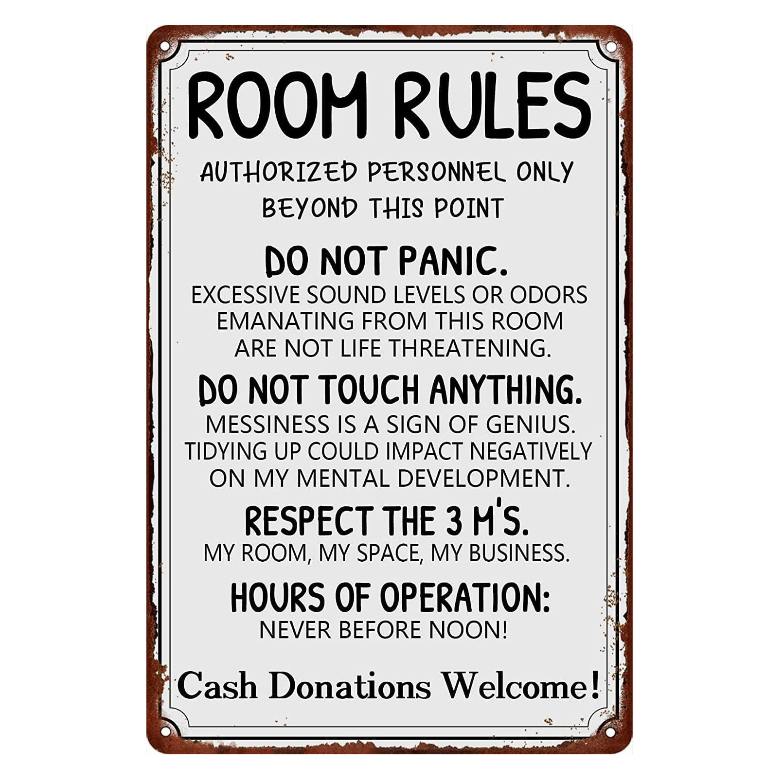 レトロなブリキの絵「ルームルール」ユーモア警告ホームオフィスパーソナライズされた装飾吊り絵画