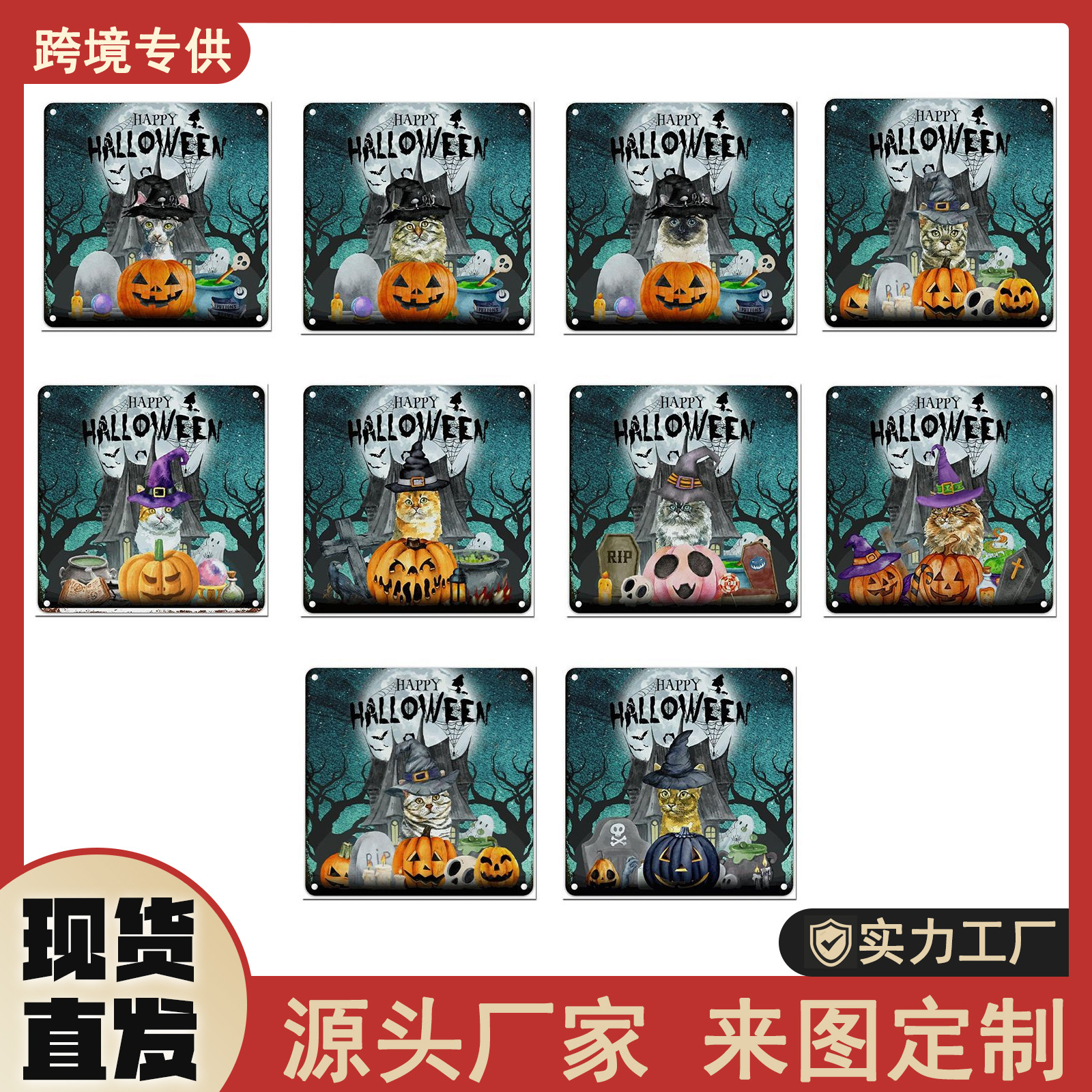 クロスボーダーハロウィンカボチャ魔女猫ホラーハウスゴーストメタル壁装飾ゴーストハロウィンメタルタグ