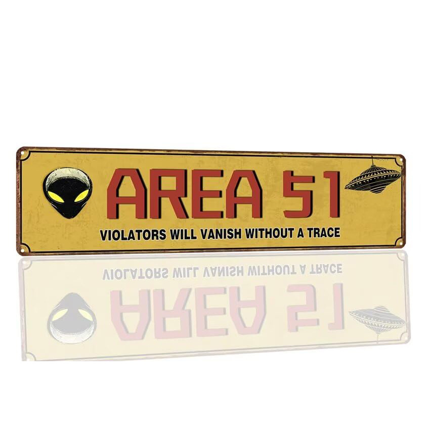 レトロなブリキ絵画エリア 51 エイリアン禁止エリア警告ユーモア吊り絵画装飾