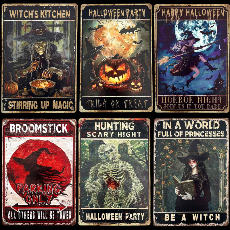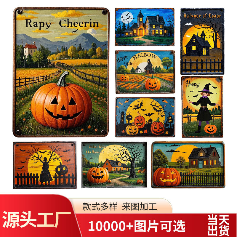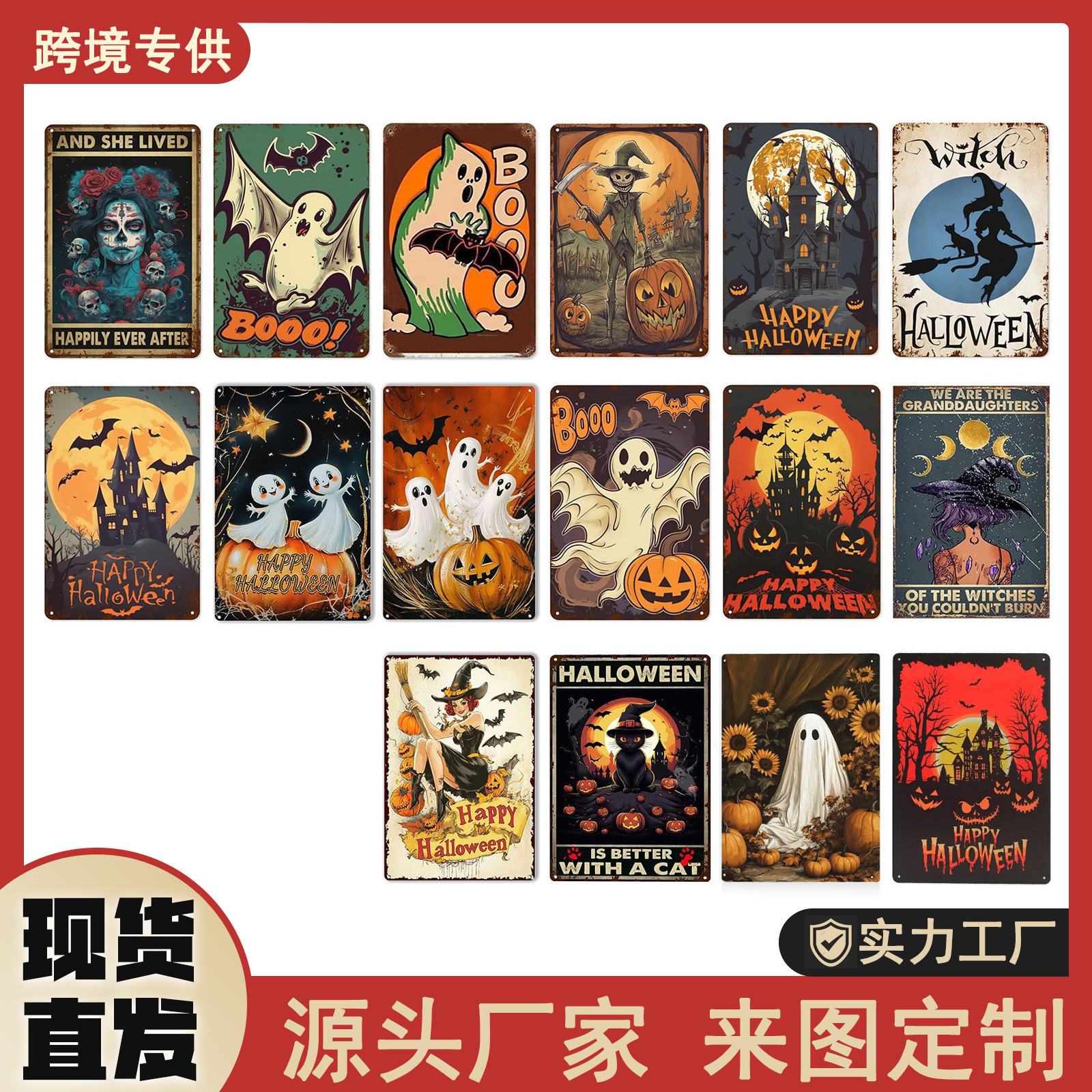 JIT ブリキ絵ハロウィン装飾絵画ブリキデザインクリエイティブメタルクラフトリビングルームバー壁掛け卸売