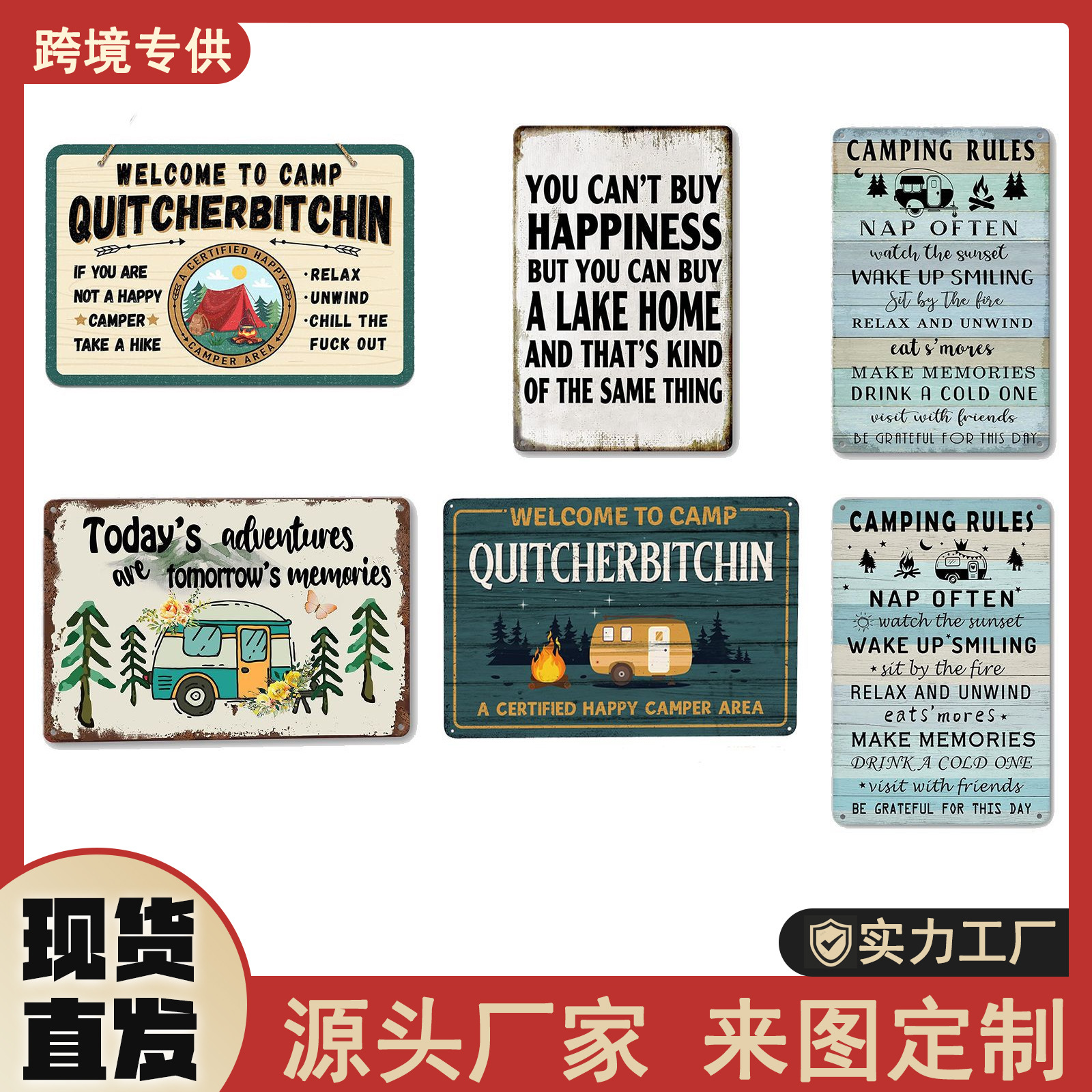 国境を越えた売れ筋レトロハッピーキャンピングカーメタルブリキサインテラス壁装飾裏庭テラスサイン