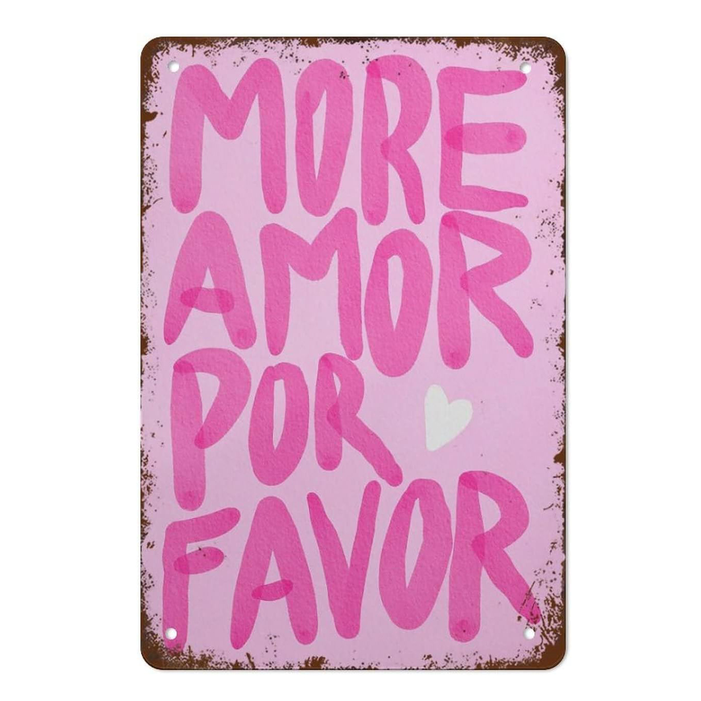 スペインのレトロなブリキ絵画 More Amor Por Favor 愛をテーマにした装飾プレート