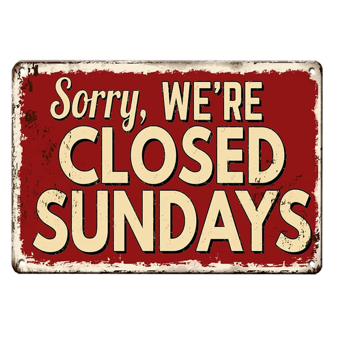 「申し訳ありませんが、日曜日は営業しておりません」レトロなブリキ絵画家のユーモア装飾吊り絵