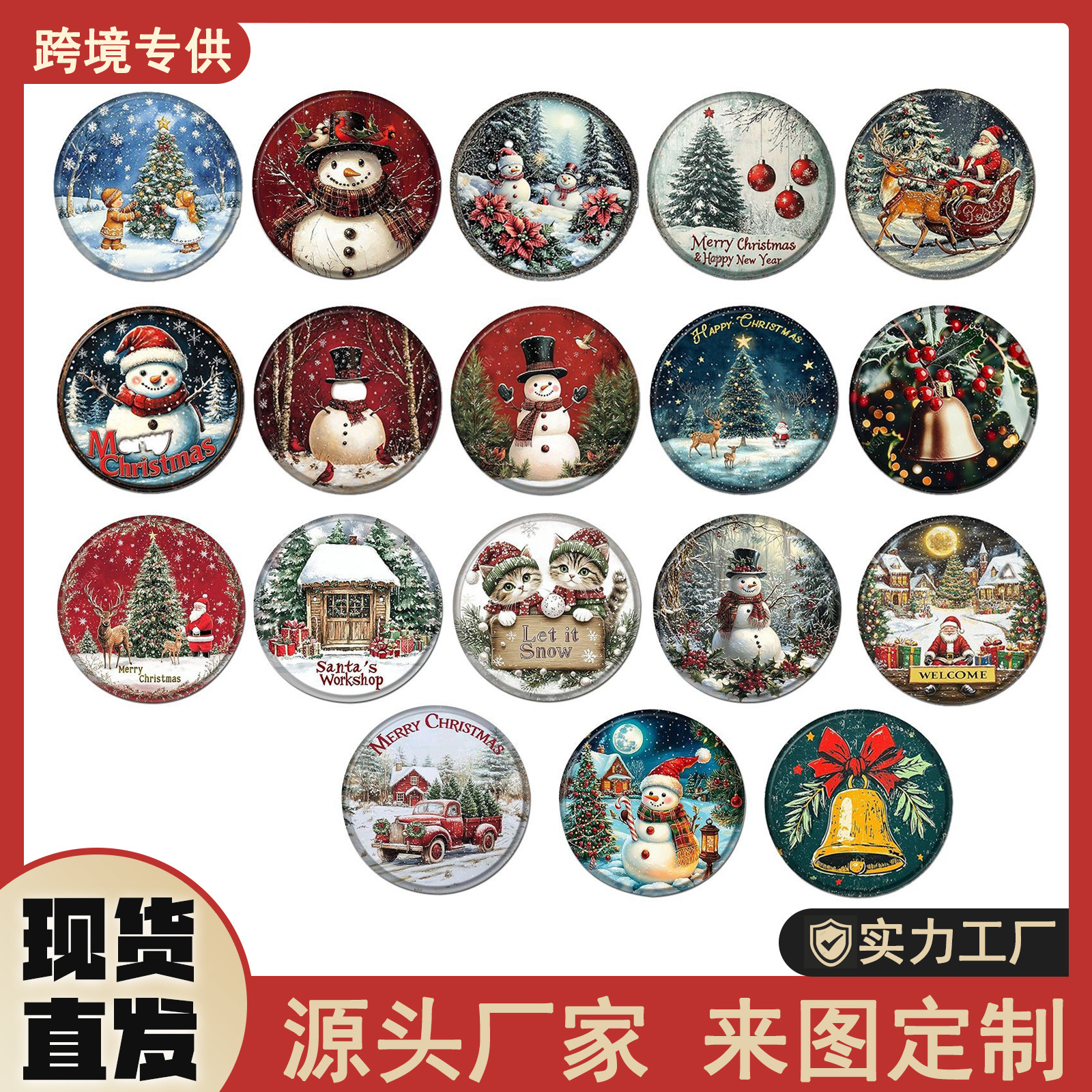 国境を越えた売れ筋のレトロなクリスマスメタルサイン、楽しいクリスマスツリー缶サイン、クリスマスラウンドブリキ絵画
