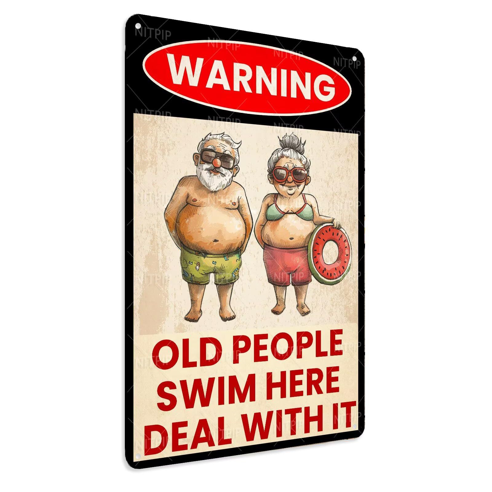 面白い水泳警告サイン鉄絵画警告老人はここに泳ぎますレトロな装飾