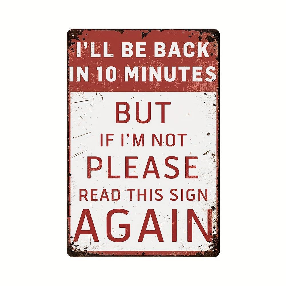 アメリカのユーモアのブリキの絵 I'll Be Back in 10 Minutes 面白いレトロなドアサイン装飾