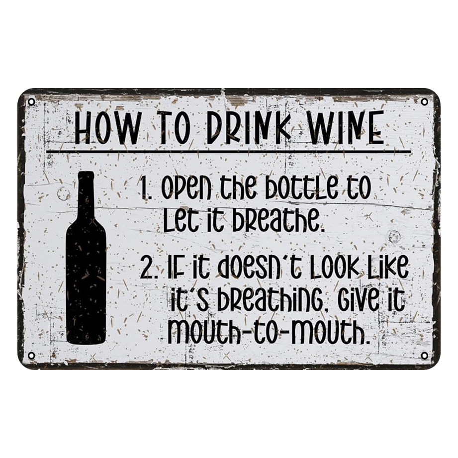面白いワインの飲み方ガイド メタルブリキ絵画 HOW TO DRINK WINE ユーモアバー レストラン