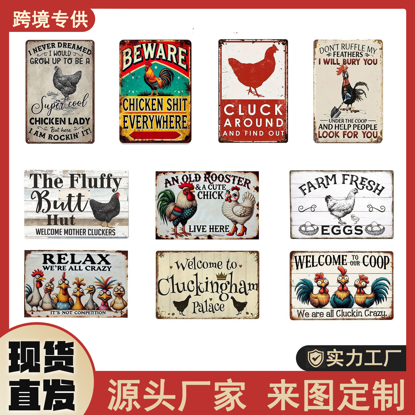 国境を越えた売れ筋のユーモラスな農場の鶏の金属ブリキの看板カントリースタイルの装飾家禽農場の装飾