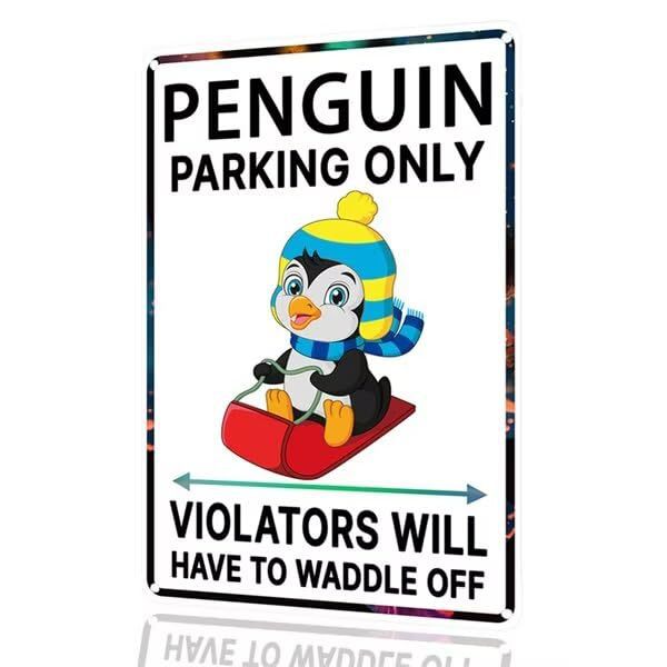 ペンギン専用駐車場 面白いブリキ絵 ペンギン駐車場専用 メタル装飾プレート