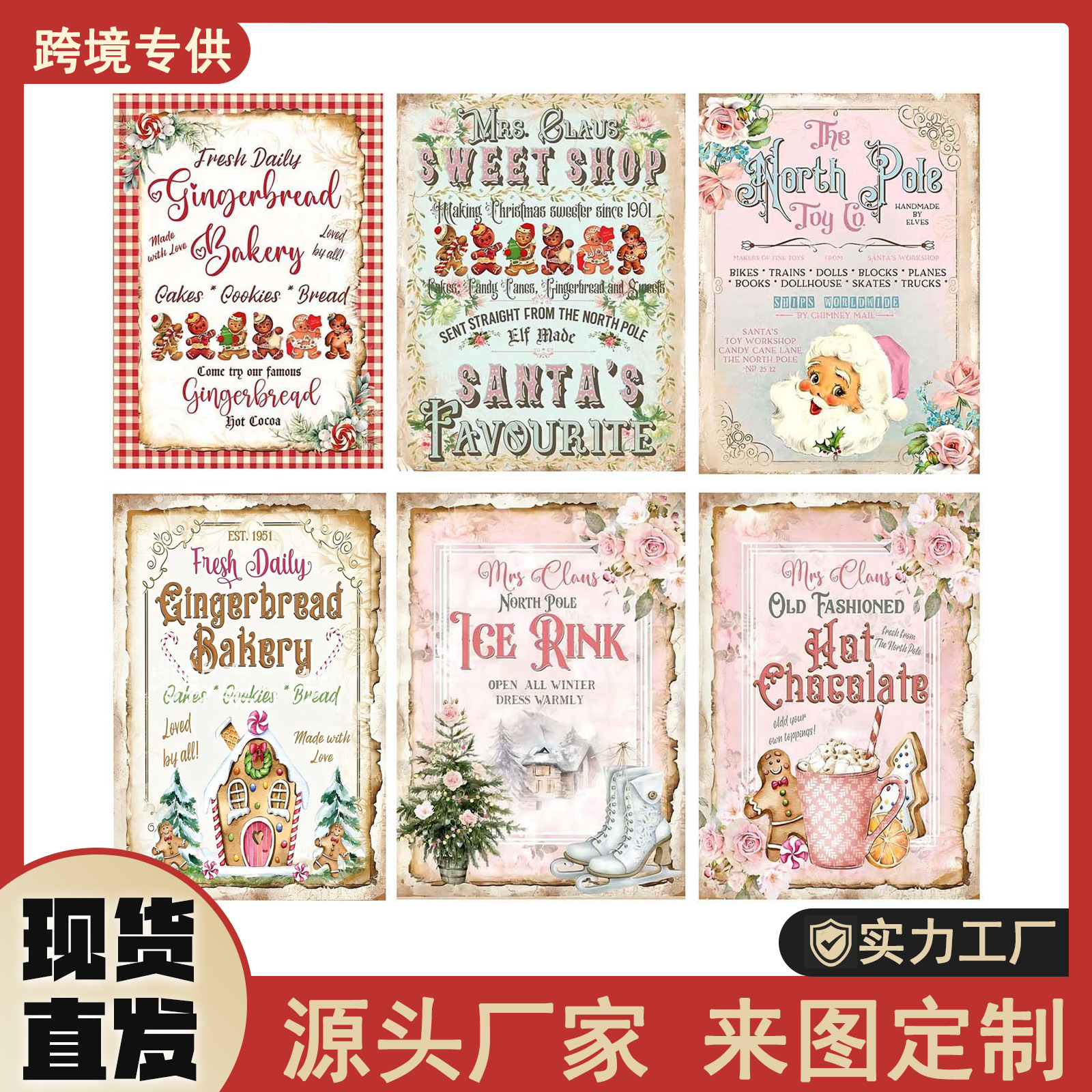 クリスマスレトロ金属ブランド北欧壁面個性装飾ブリキ画工場卸売り
