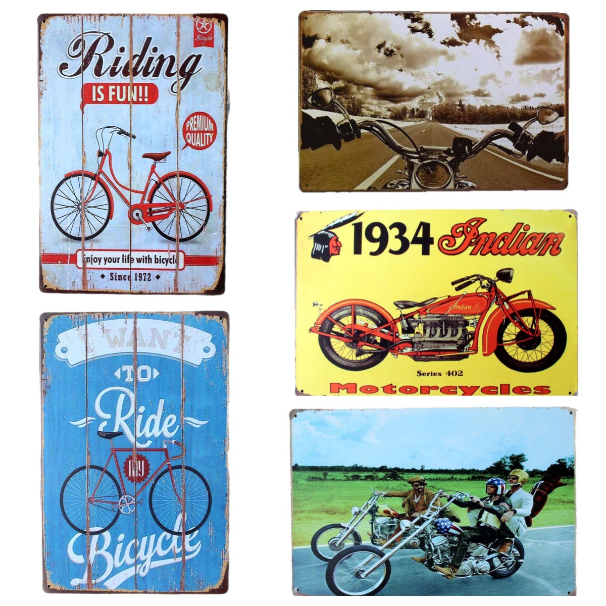 アメリカのブリキ画のレトロなスタイルの自転車のブリキの車のナンバープレートは絵を掛けて古い工芸の装飾の鉄の芸画をします。