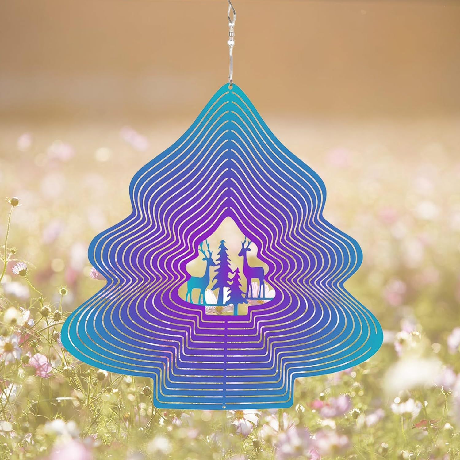 風車回転器七彩ヘラジカ3dステンレスレーザー切断金属風鈴回転器掛け室内外装飾