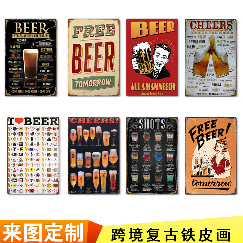欧米のビールの鉄の皮の絵のcustom卸売りの復古の工芸品のバーのktvは速達で販売します。
