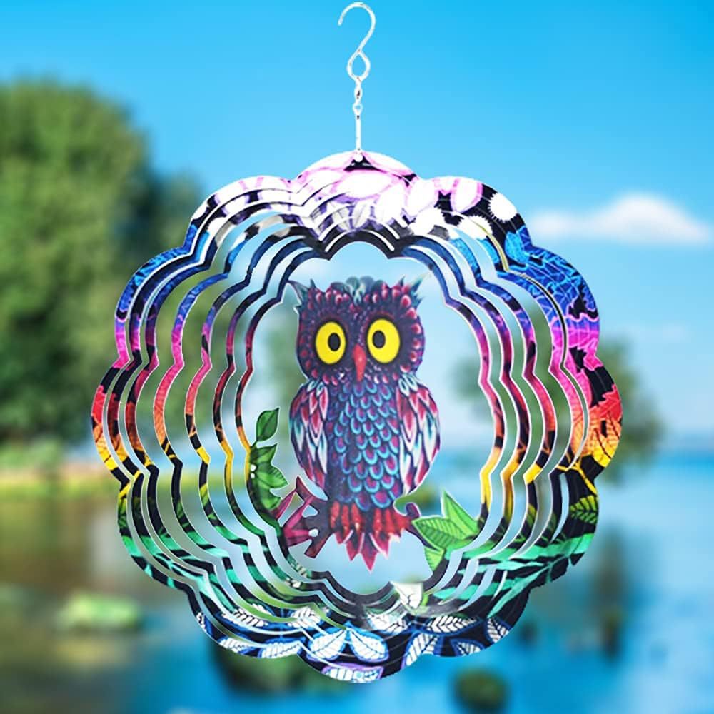 フクロウ風回転器屋外金属3dダイナミック彫刻ステンレス屋外室内外置物プレゼント装飾