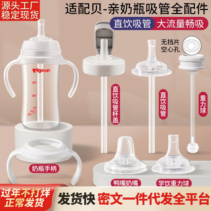 貝親哺乳瓶部品直飲ストローアヒル口乳首重力ボール学飲カップカバー第2/3代ハンドル