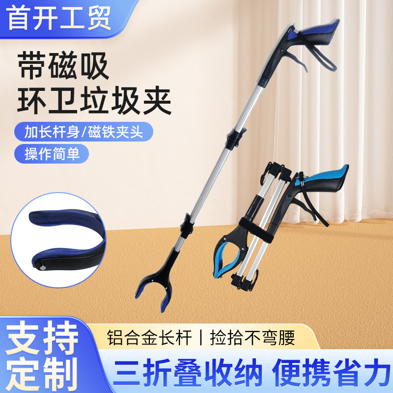 折りたたみ式ゴミクリップ、厚みのあるアルミニウム合金ロングハンドルピッカー、ゴミ拾いクリップ、衛生ツール