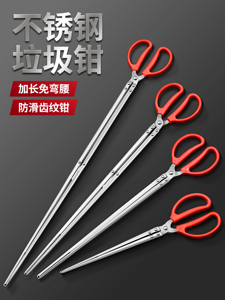 超長ステンレスゴミクリップ、バーベキュー鉗子、ピッカー、衛生ゴミ鉗子、フードクリップ、カーボンクリップ