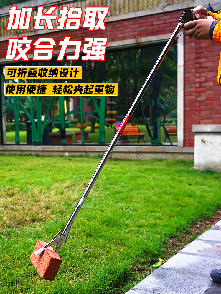 ゴミ拾いピッキングピックアップ家庭用延長取物火ペンチ炭素クリップ環衛工長柄ステンレス衛生訴え