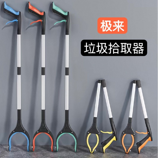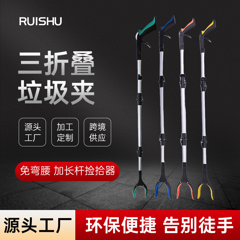 跨境三折叠铝合金垃圾夹搞卫生免弯腰加长杆捡拾器拾取清洁卫生
