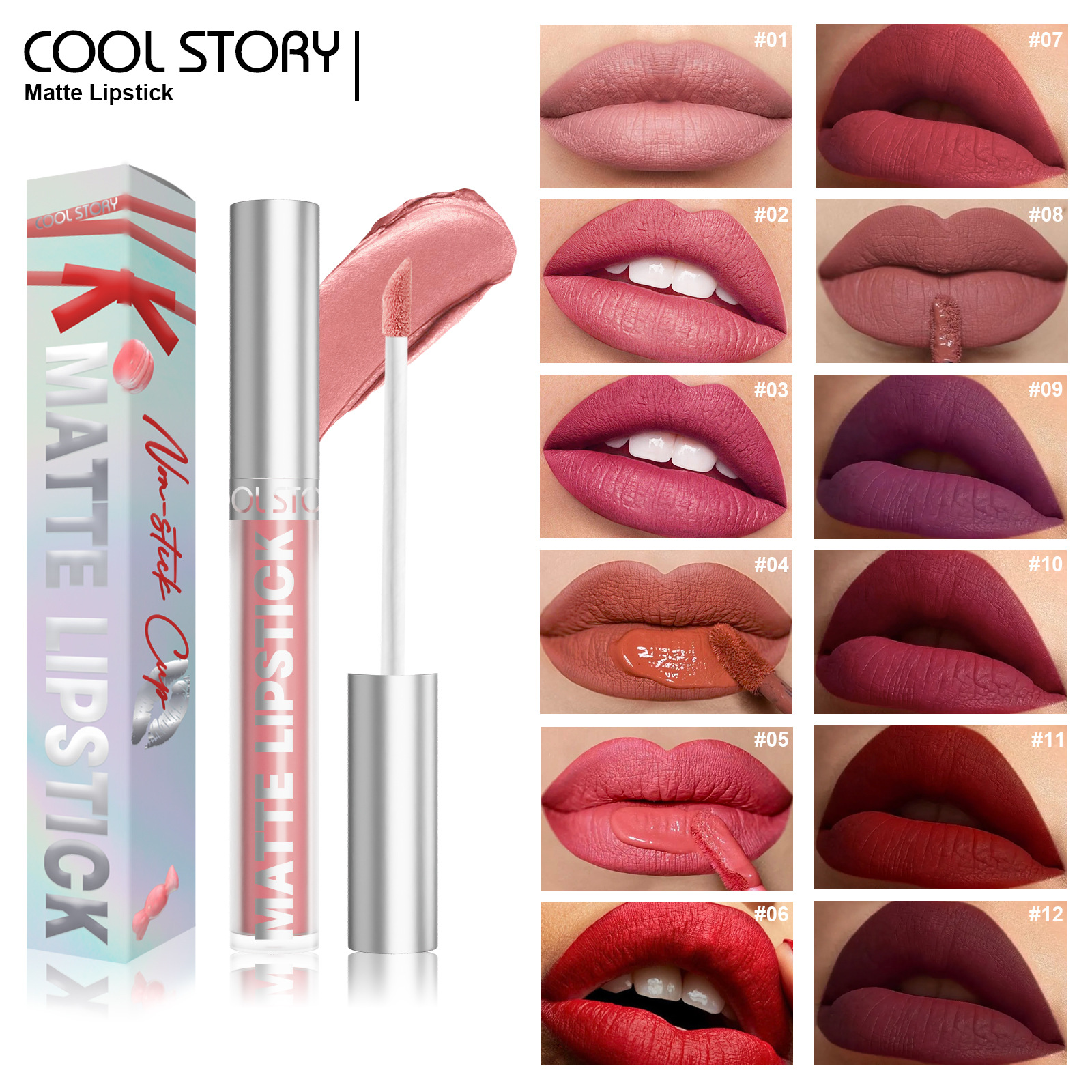 ノンスティックリップグロス、マットソリッドカラーリップグレーズ、色褪せしにくい、液体口紅、色持ちが長持ち、防水性と耐汗性のクロスボーダーメイクアップ