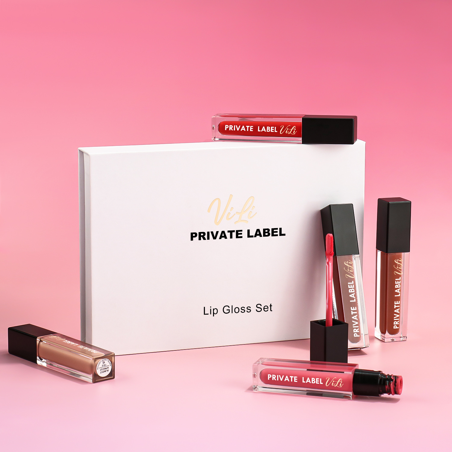 5本入りリップグロス、リップティント、マット、カップに付かない、化粧品セット、ロゴなし