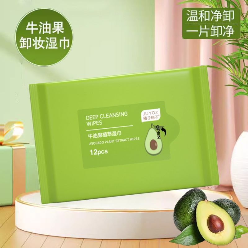 牛油果クレンジングウェットティッシュ使い捨て顔面温和清潔保湿洗顔タオルクレンジングタオル12枚携帯旅行