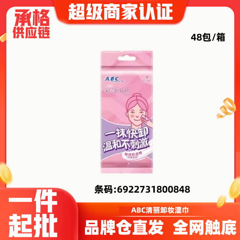 ABC Qingli メイク落としワイプ メイク落としコットン個別包装メイク落としワイプ無洗浄ディープクレンジング全箱卸売 0848
