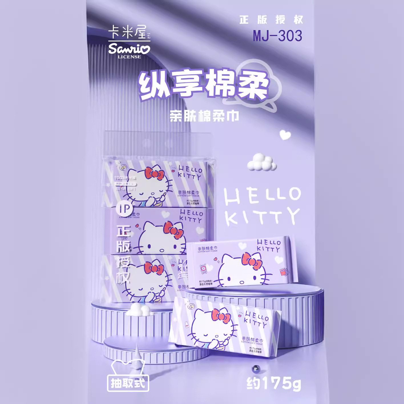 一次性加厚棉柔巾三丽鸥Kitty洗脸巾珍珠纹干湿两用美容抽纸批发