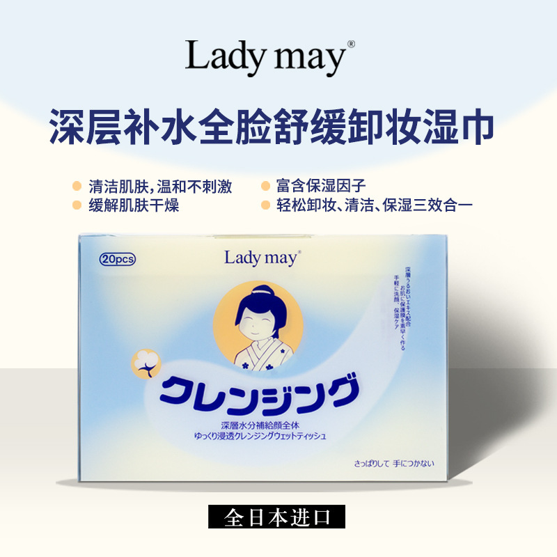 日本製 Ladymay メイク落としワイプ、優しく保湿、洗浄不要、携帯用、独立したパッケージ、目、唇、顔用のスリーインワン使い捨て