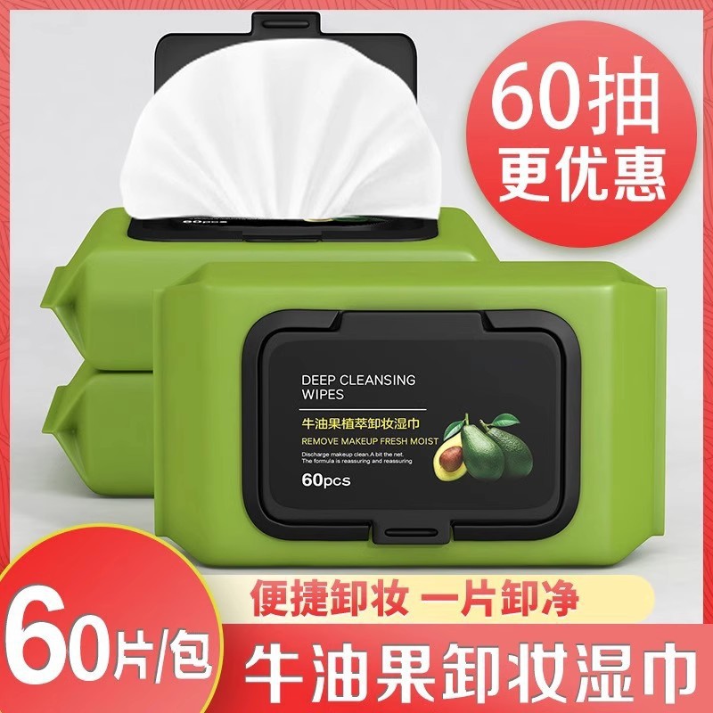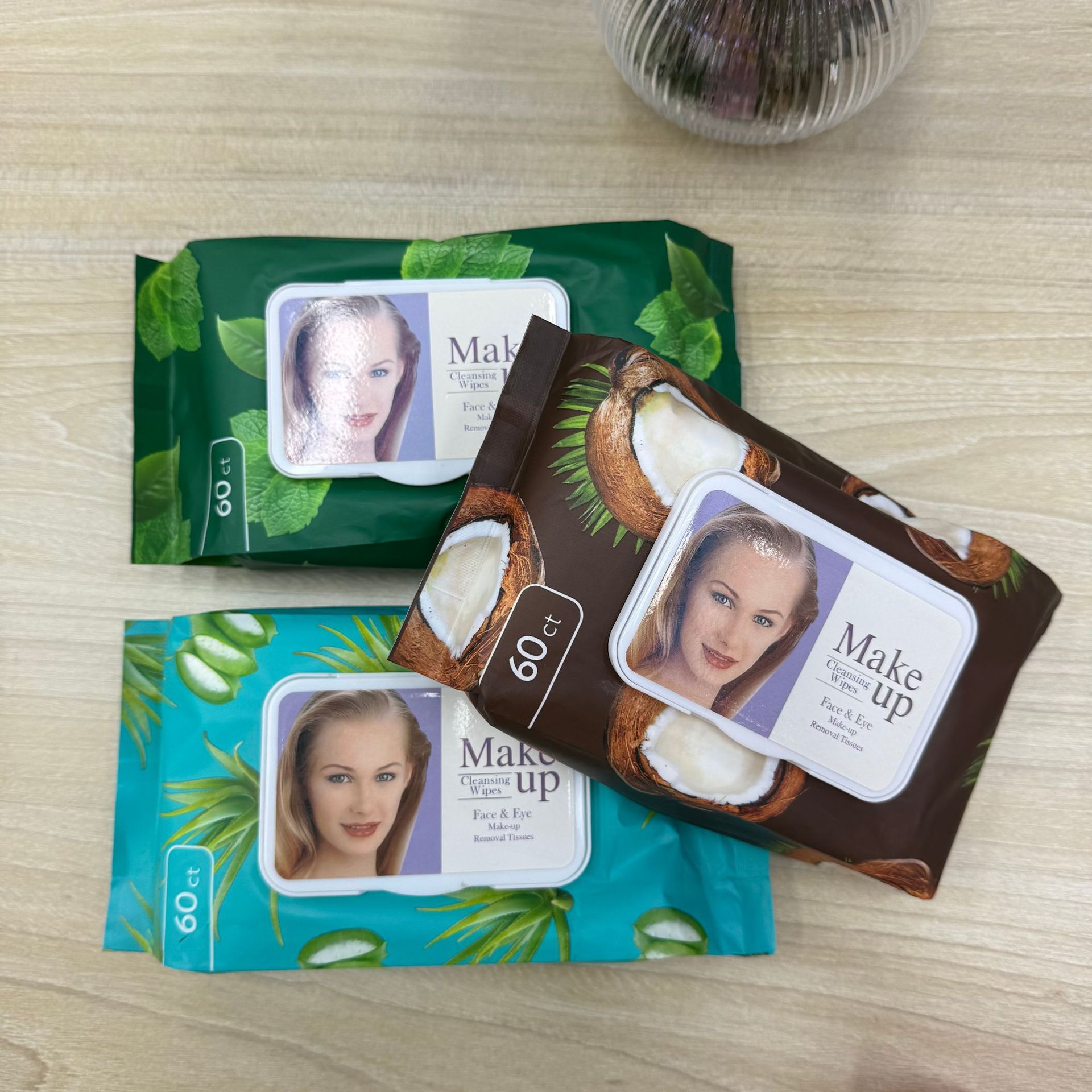 外国貿易 60 枚の香りのメイク落としワイプ、優しく非刺激性、ディープクレンジング、使い捨ての洗浄不要のメイク落としワイプ